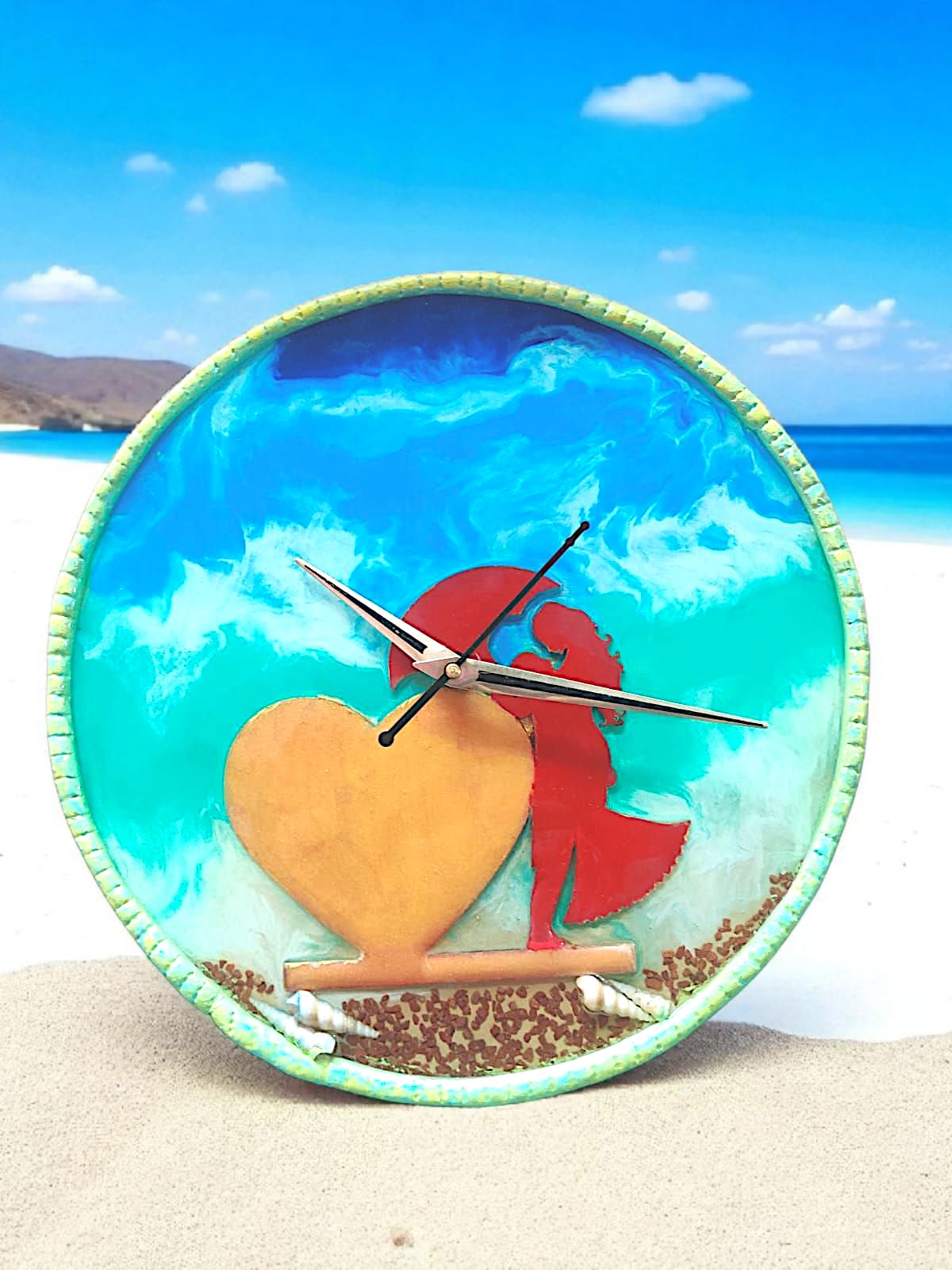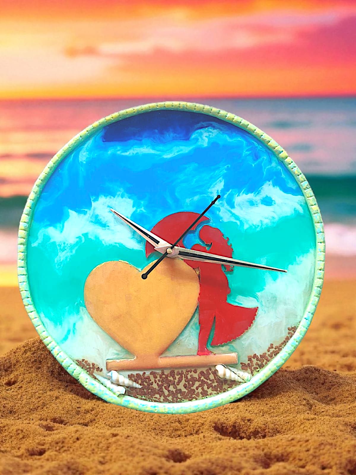 • Shell and Starfish Accents: Small, elegant seashells or sea stones placed around the edges of the clock, adding subtle details that tie into the romantic ocean theme.